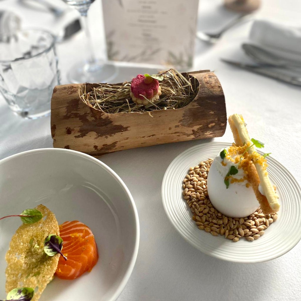 - Le plat de viande ou de poisson, ou les 2, qui est travaillé en plusieurs assiettes aussi.