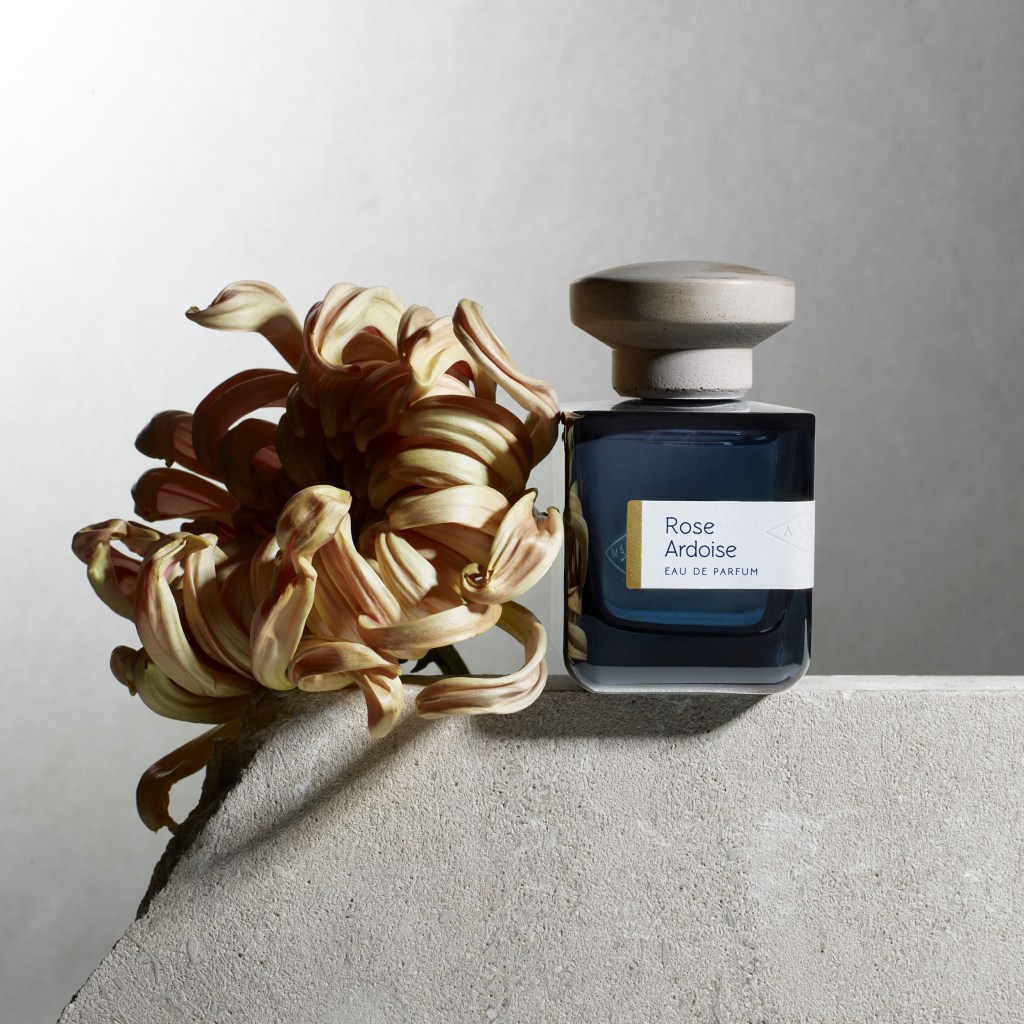 L’ambroxan est une de mes matières fétiches. Tous les parfumeurs qui travaillent avec moi savent que j’ai une obsession pour cette matière première. C’est une très belle matière de synthèse, issue de la recherche organique, qui est très complexe, hyper riche, facettée. J’aime justement ses facettes boisées, ambrées, légèrement animales. Je trouve que c’est un ingrédient qui apporte tout de suite beaucoup de sensualité à un parfum. On en retrouve dans Bois d’Ambrette et dans Rose Ardoise qui contient plus de 20% d’ambroxan.