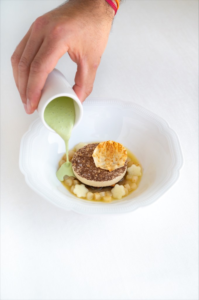 Aleksandre : La nouvelle carte du gastro, cet été, propose aux clients de belles nouveautés, avec notamment un dessert sur les cueillettes du moment, entre les herbes du potager du palais, les cueillettes sauvages ( fleur de sureau, reine des prés …) et les algues de mon producteur Jean-Marie Pedron qui me livre en fonction de ses récoltes… un dessert vivant au fil de l’humeur du temps qui évolue constamment.